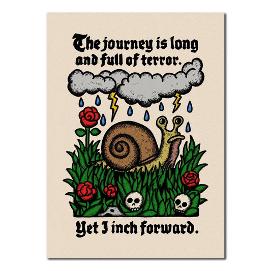 The journey is long and full of terror. Yet I inch forward. Snail print *3 sizes available*